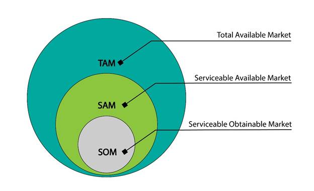 - Serviceable Available Market (SAM): The segment of the TAM targeted by your products and services that is within your geographical reach.